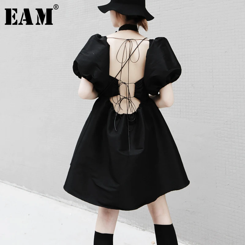 Женское Бандажное платье EAM, платье с квадратным вырезом и коротким рукавом, весенне-летняя мода 2020 1T658