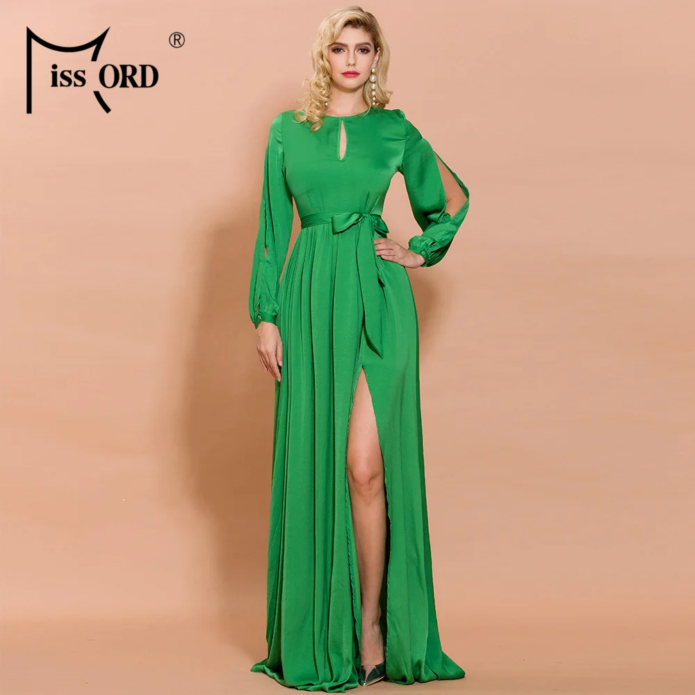 Missord 2019 женские сексуальные платья с круглым вырезом и длинным рукавом, однотонные платья с высоким разрезом, женские элегантные платья мак...