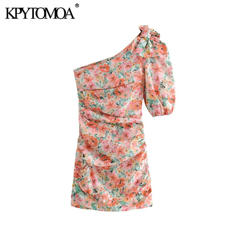Винтажное сексуальное платье с цветочным принтом, одно платье с открытыми плечами, Мини платье для женщин 2019, модное стильное платье с завяз...