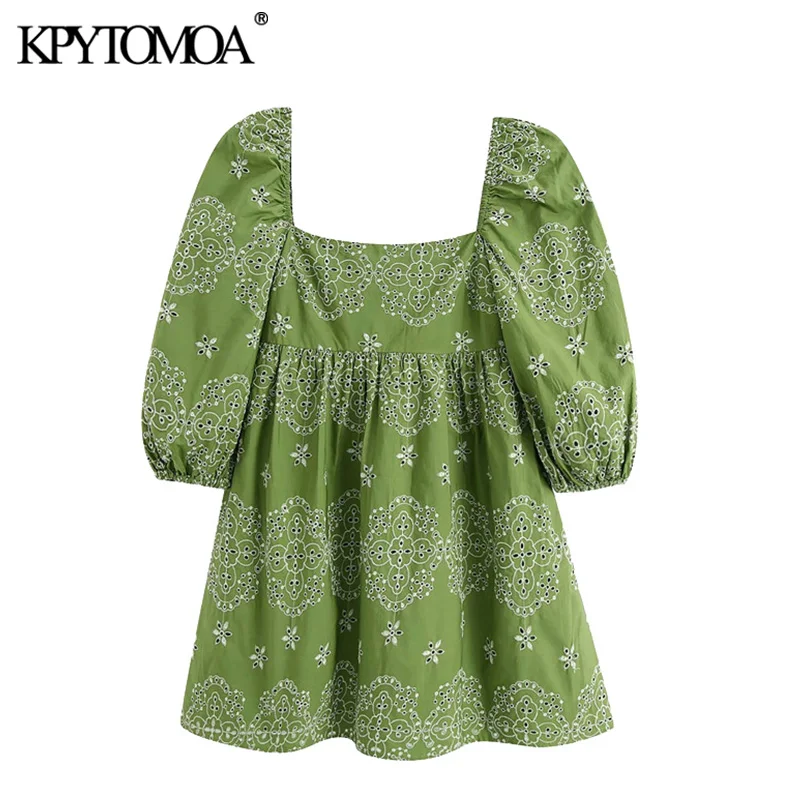 KPYTOMOA Women 2020 Chic Fashion Cutwork Embroidery Mini Dress Vintage Puff Sleeves With Lining Female Dresses Vestidos Mujer