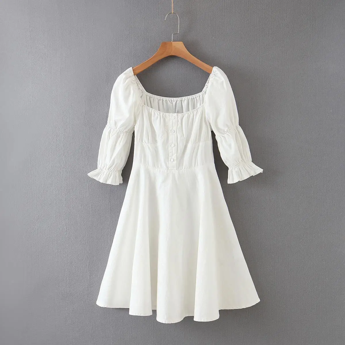 2020 Новое модное Брендовое летнее платье с пышными рукавами и вырезом лодочкой, свободное платье выше колена, однотонное мини-платье