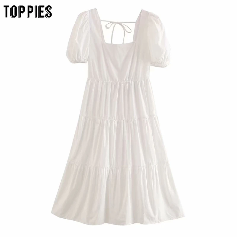 Toppies/белое хлопковое праздничное платье миди, женское летнее платье с квадратным воротником, Бандажное сексуальное платье