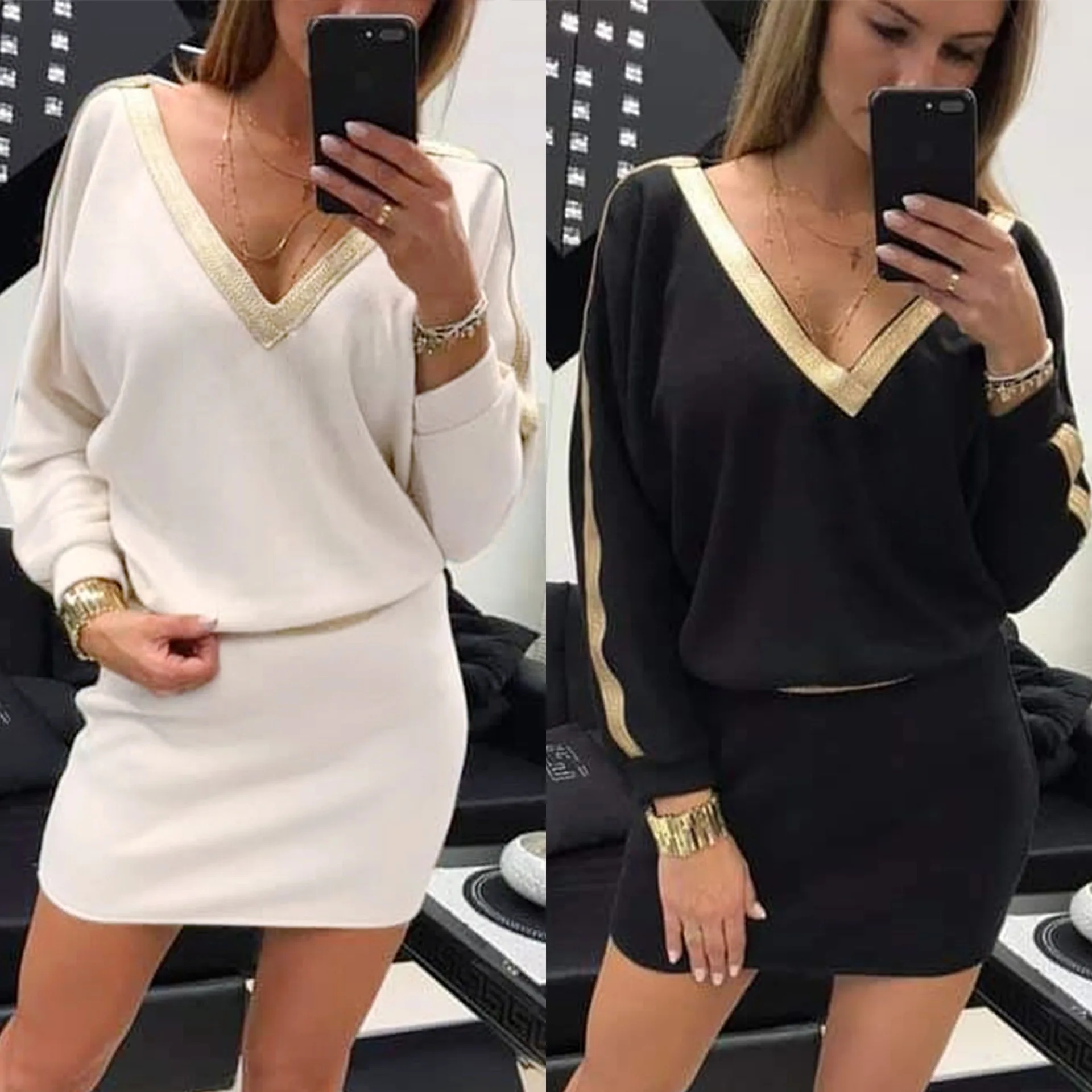 2019 пикантный низкий разрез в стиле пэчворк с длинными рукавами и эластичной резинкой на талии женское Мини сексуальное платье женские вече...