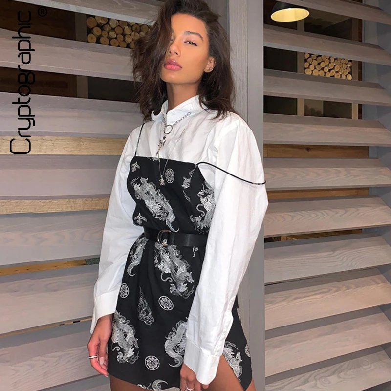 Криптографическое платье на бретельках с принтом дракона, без рукавов, с разрезом, сексуальное женское мини-платье, уличная мода, наряды, летние платья