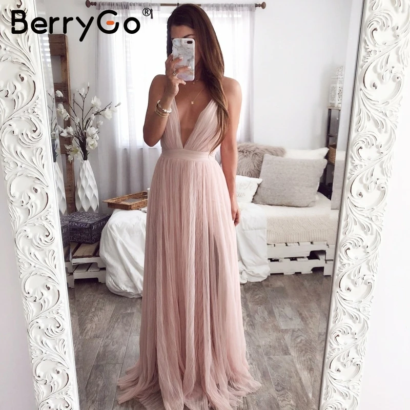 BerryGo ремень полосатый сетки кружево разделение женское платье Sexy Глубокий v средства ухода за кожей шеи спинки платье макси осень зим