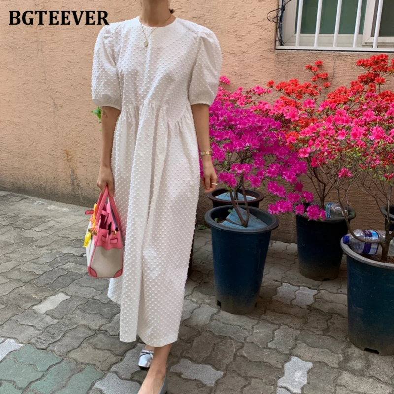 BGTEEVER повседневное длинное женское платье с круглым вырезом и пышными рукавами, модель 2020 года, летнее платье в крупный горошек, женское Свободное платье, Vestidos Femme