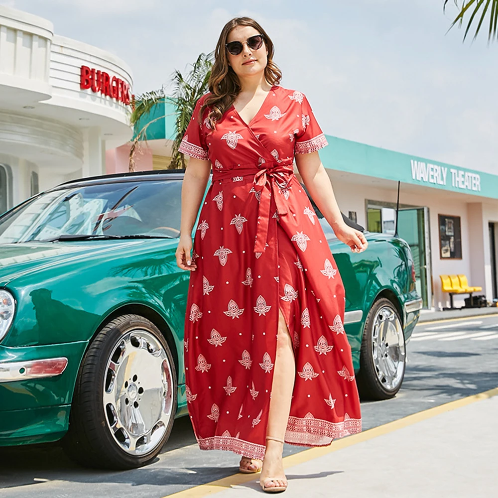 Элегантное шифоновое пляжное платье миди с принтом в стиле бохо, весна-лето, большие размеры, винтажное подиумное платье макси, женское облегающее платье для вечеринки, 2020