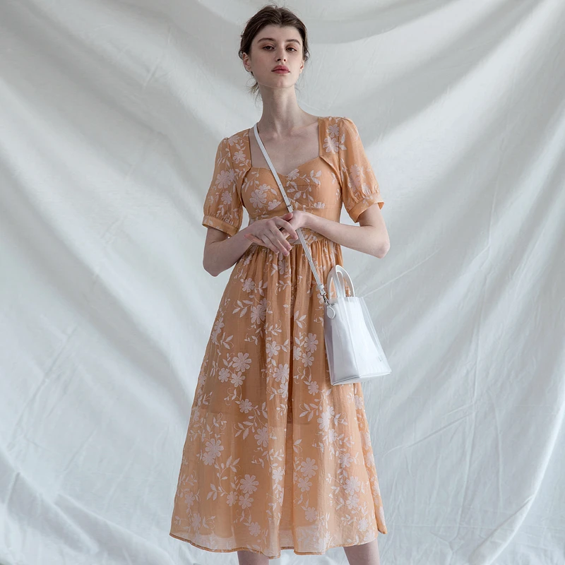 Летнее французское ретро платье для женщин, повседневные платья средней длины с квадратным воротником, оборками и пышными рукавами, robe femme ropa mujer, 2020