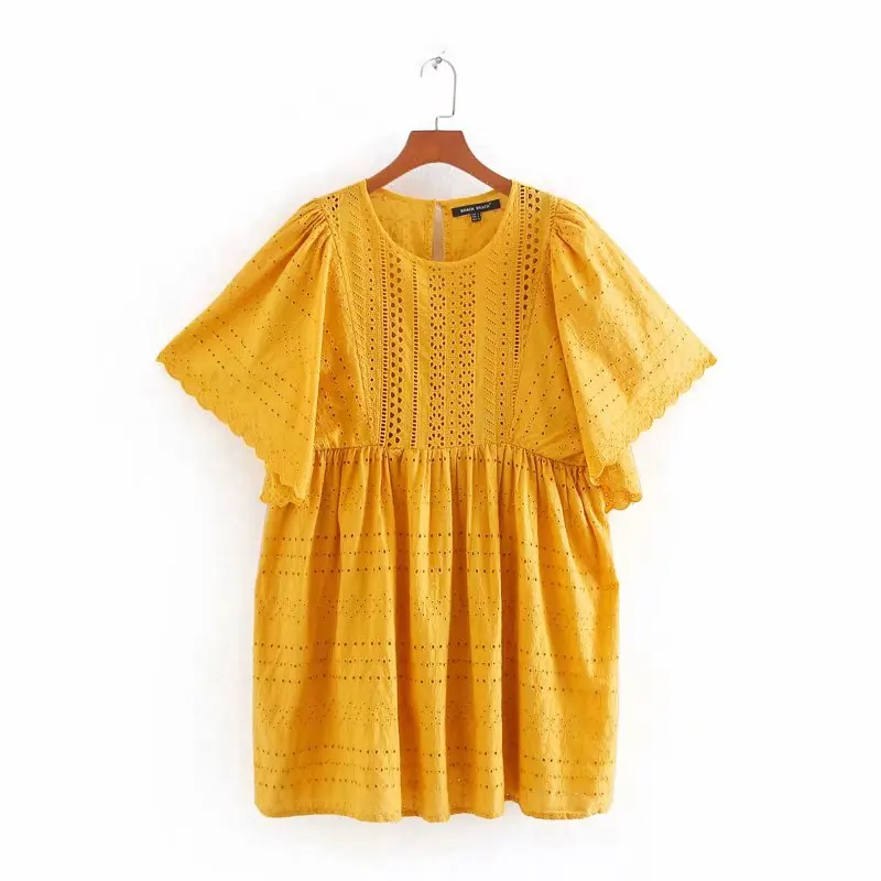 2020 женское модное мини-платье с круглым вырезом и рукавами-бабочками в стиле пэчворк с вышивкой повседневные женские платья DS3649