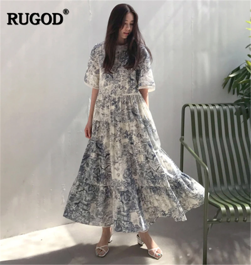 RUGOD 2019 Summerl женское платье с круглым вырезом свободный с короткими рукавами Vestidos абстрактные чернила окрашенная Винтаж темперамент Stiching пла...