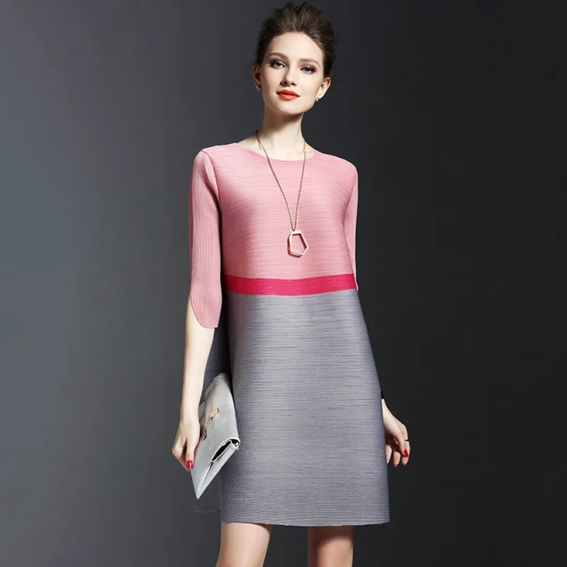 LANMREM 2019 сезон: весна–лето плиссированные мини-платья для Для женщин полоски контрастного цвета с круглым вырезом свободные Повседневное По...