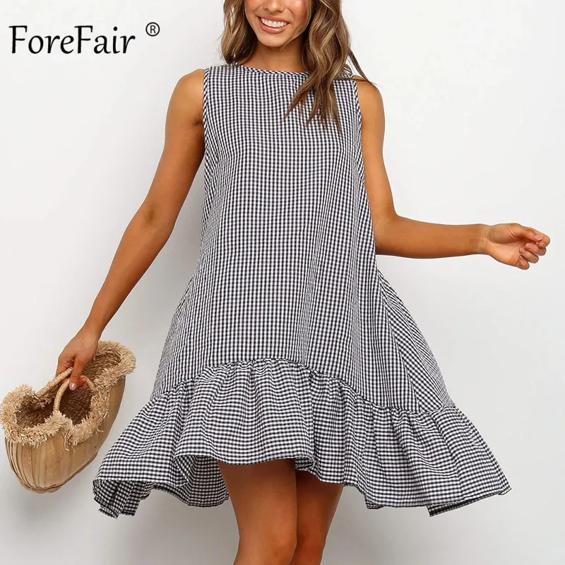 Женское пляжное платье с рюшами Forefair, свободное летнее платье в стиле бохо с круглым вырезом и открытыми плечами, большие размеры, 2020