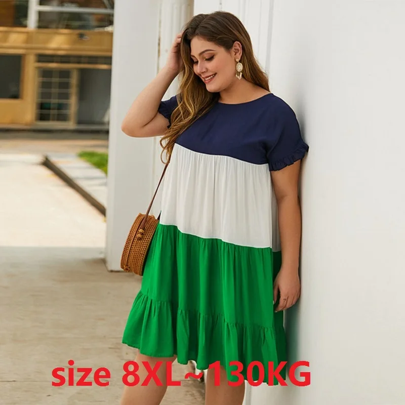 Женское Повседневное платье большого размера 6XL 7XL 8XL с круглым вырезом и коротким рукавом, лоскутные свободные хлопковые платья с кисточками, Дамское Повседневное платье большого размера