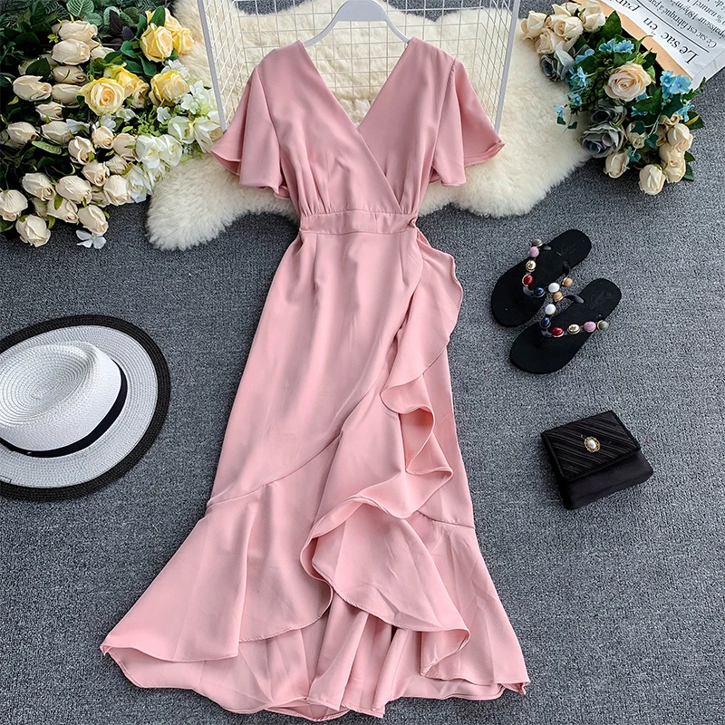 2020 тонкое модное асимметричное длинное платье миди с v-образным вырезом, вечерние женские повседневные Элегантные платья, Необычные пляжны...