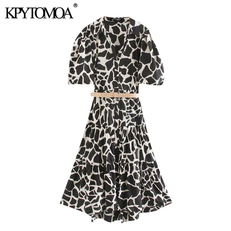 KPYTOMOA женское шикарное модное платье миди с животным принтом и поясом, винтажные плиссированные женские платья с коротким рукавом, Vestidos Mujer, 2020