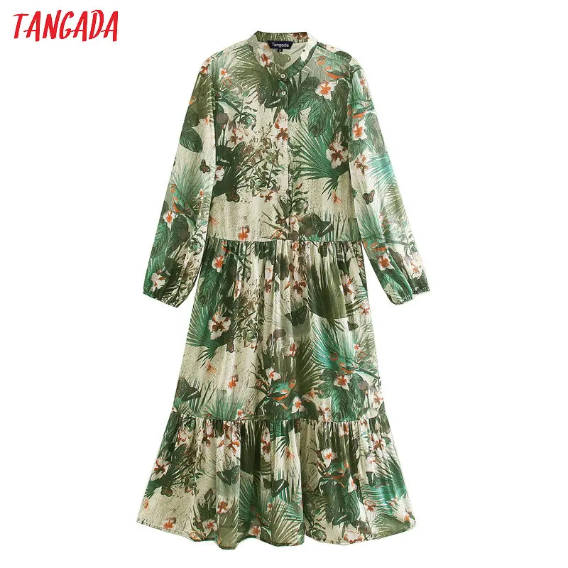 Женское платье с принтом в виде листьев Tangada, свободное платье средней длины с длинным рукавом, новинка 2020, XN214