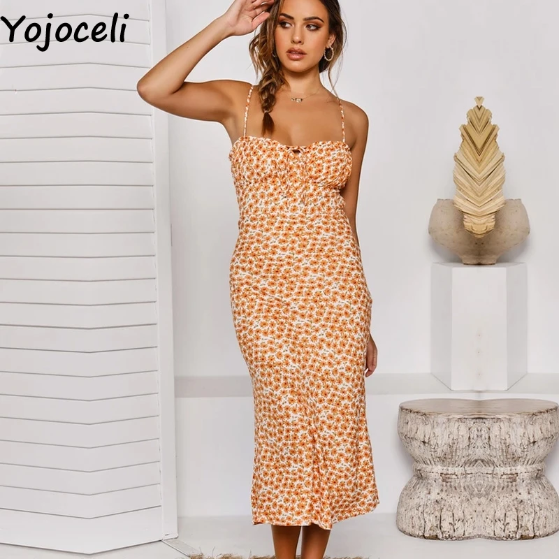 Yojoceli Элегантное Длинное платье с цветочным принтом, женское летнее сексуальное пляжное платье на бретелях, женское повседневное крутое Мак...
