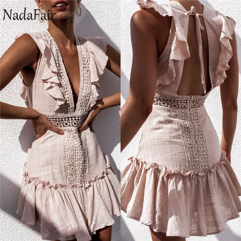 Nadafair женские кружевные вечерние платья трапециевидной формы с оборками, сексуальное женское летнее платье с открытой спиной и v-образным вы...