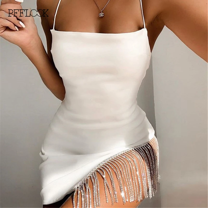 PFFLOOK 2019 летнее сексуальное элегантное белое платье с кисточками облегающее платье на бретельках для вечеринок женское облегающее клубное м...