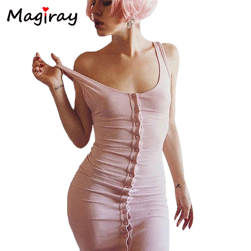 Пикантные в рубчик без рукавов макси Vestidos Высокая Талия длинное платье на бретелях Лето 2019-приталенные облегающее платье Femme пуговицы Для ж...