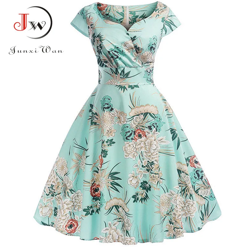 V-образным вырезом большие качели Винтаж рождественское платье Для женщин летние 50 s Элегантный Платья для вечеринок Повседневное короткий ...
