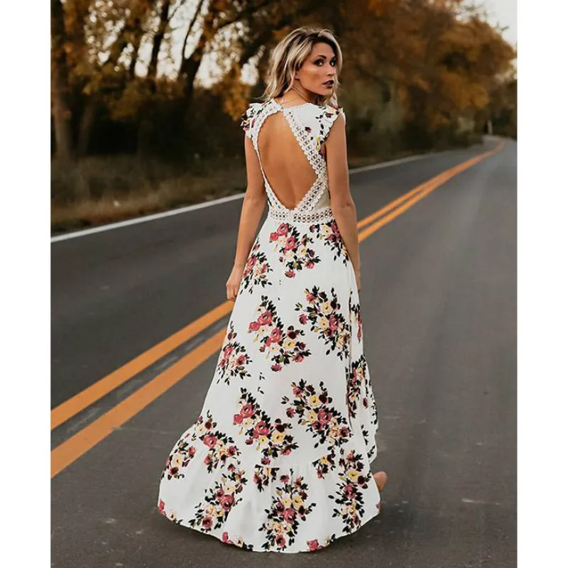 Элегантное Брендовое женское длинное платье в стиле бохо, вечерние платья в богемном стиле, пляжный праздничный сарафан с цветочным принтом, сексуальные платья с открытой спиной