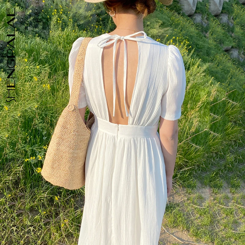Женское винтажное платье SHENGPALAE, длинное тонкое платье с высокой талией и рукавами-фонариками, лето 2020