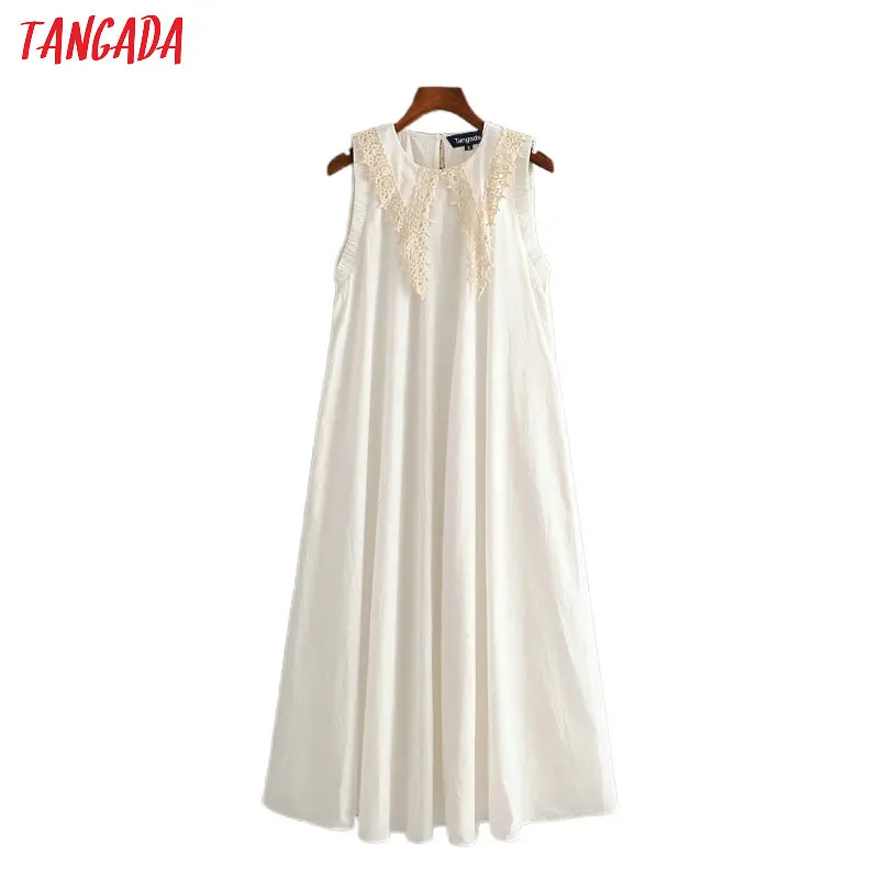 Tangada женское белое хлопковое длинное платье макси без рукавов с пуговицами сзади женские кружевные длинные платья с воротником 3H500