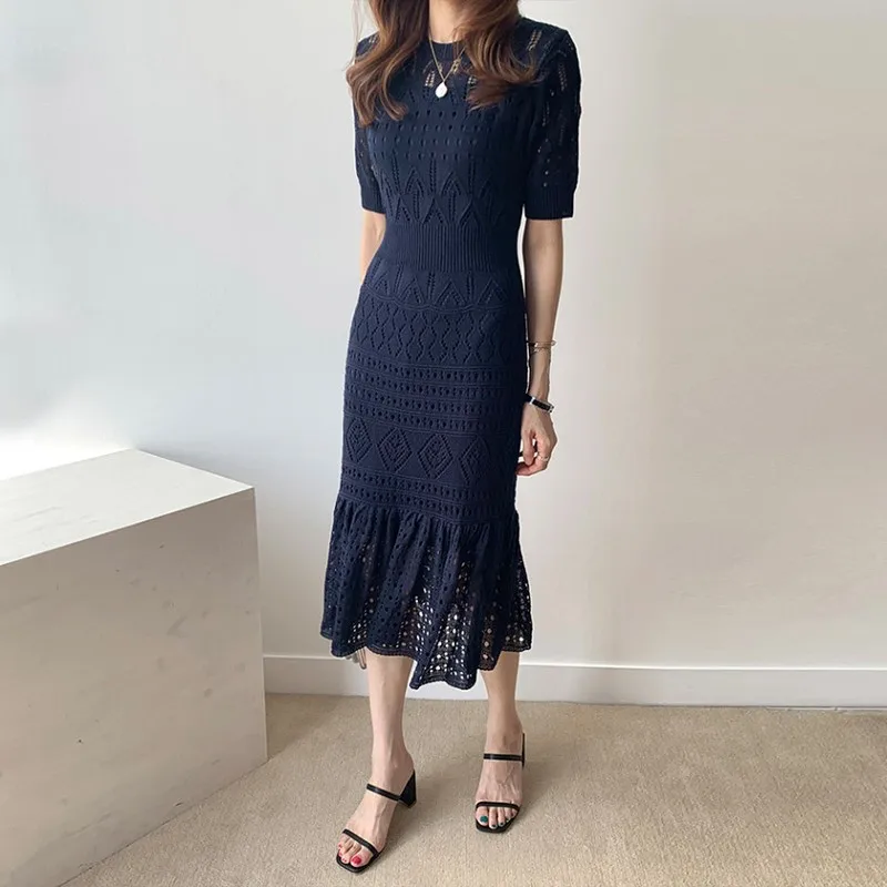 2019 Новый Подиум осень зима шикарный элегантный вязаный свитер Повседневное платье выдалбливают трикотажные тонкие плиссированные Стрейче...