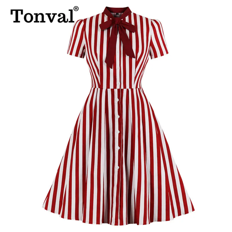 Тонвал, однобортное пальто с завязками на шее темно-красные полосатые Платья из хлопка 50S Винтаж халат Для женщин рокабилли вечерние Элеган...