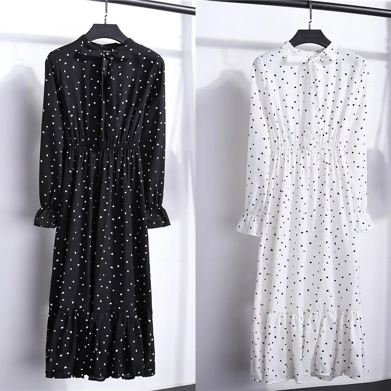 Элегантный Dot свободный рукав с принтом Для женщин длинные платья весна 2019 рюшами Лоскутное шнуровке шифоновое платье вечерние женские Пла...