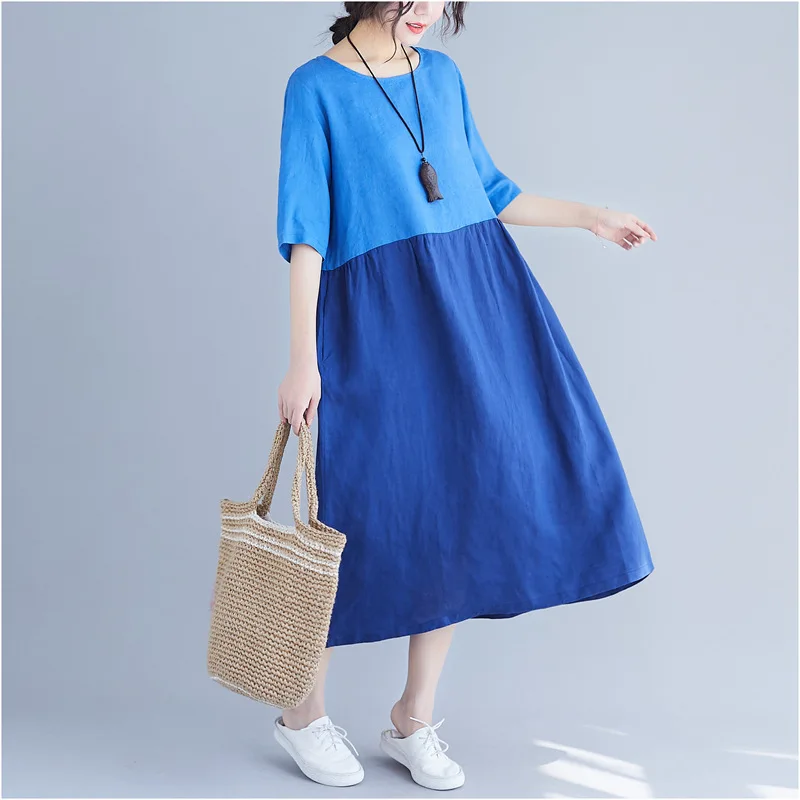 Новинка 2019 года. Летняя женская одежда. Свободные повседневные платья в стиле пэчворк с коротким рукавом и О-образным вырезом и карманами. Женское платье