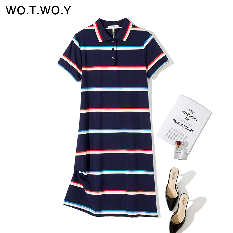Женское трикотажное платье до середины икры WOTWOY, повседневное прямое платье на пуговицах с отложным воротником, весна 2020