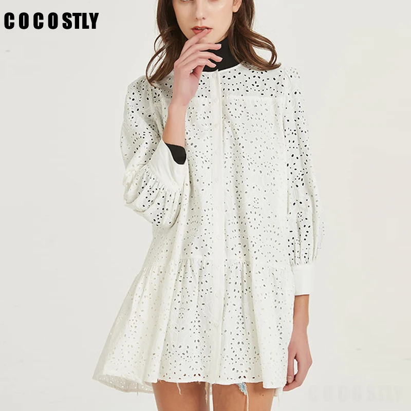 2020 летнее платье, сексуальное открытое мини-платье-рубашка, женское повседневное свободное белое платье-трапеция с длинным рукавом, Платья для вечеринок, женские платья