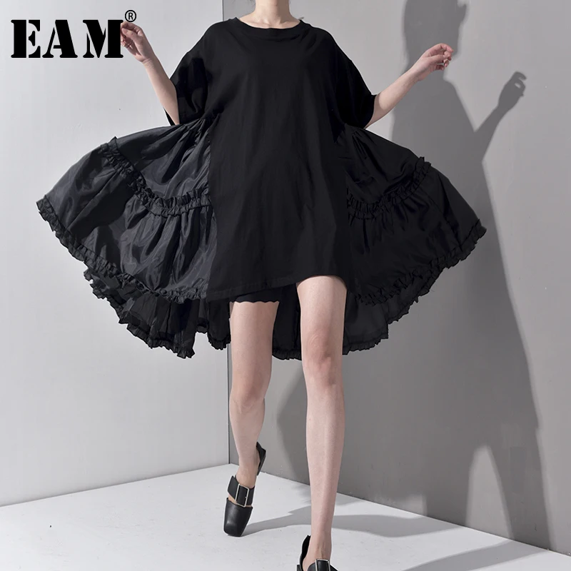 Женское плиссированное платье EAM, платье большого размера с круглым вырезом и рукавом до локтя, большие размеры, весна-лето 2020