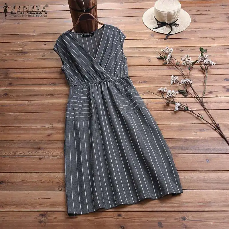 2019 плюс размер ZANZEA Eleagnt платье в полоску летнее женское Повседневное платье без рукавов с v-образным вырезом хлопок работа длинный Vestido Сараф...
