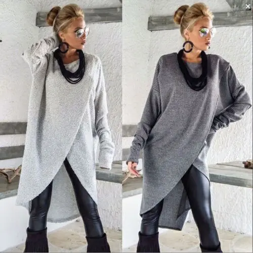 Популярные женские Для женщин Свитер с длинными рукавами Блузка Платье-Толстовка Джемпер Пуловер нерегулярные подол свободная туника плат...