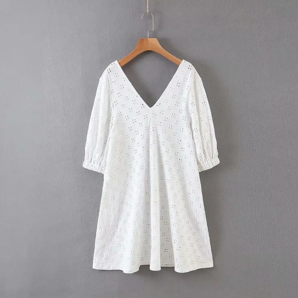 Женское элегантное белое мини-платье с v-образным вырезом и вышивкой, повседневные Прямые Платья для отдыха с v-образным вырезом, 2020