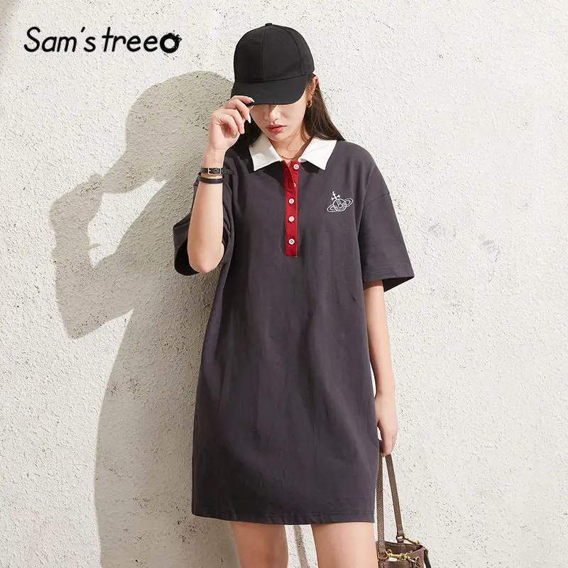 Женское винтажное платье с коротким рукавом SAM'S TREE, серое винтажное Повседневное платье с вышивкой на пуговицах, модель 2020