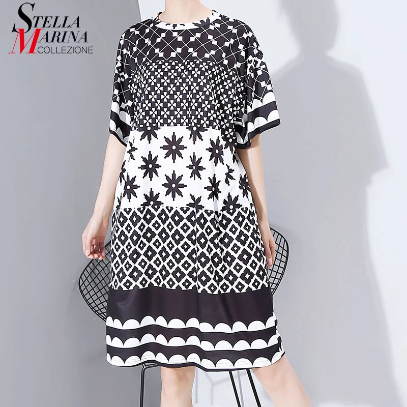 Новинка 2020, корейский стиль, женское летнее платье с принтом, круглый вырез, для девушек размера плюс, повседневное прямое платье миди, милая одежда, женское платье 6001