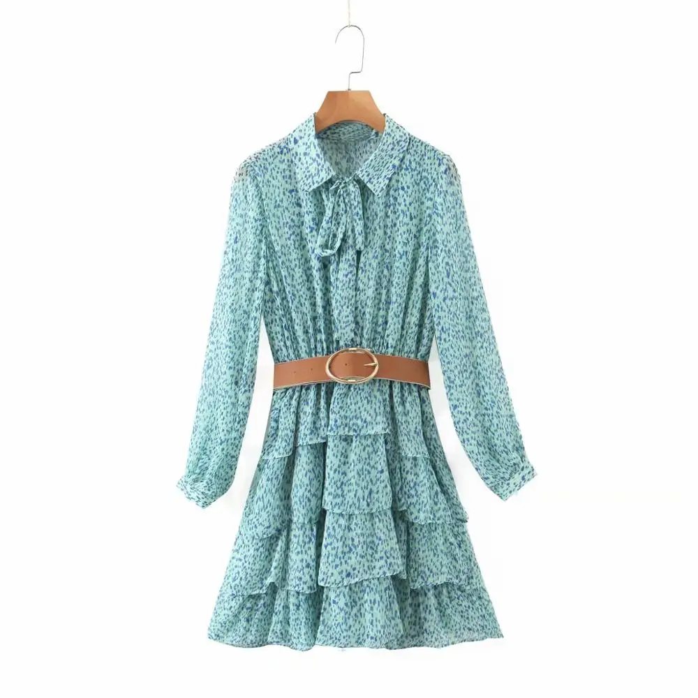 Новинка, женское платье с леопардовым принтом, каскадные оборки, пояс, нарядное платье, женское шифоновое платье с длинным рукавом, повседневные тонкие Брендовые платья DS3726