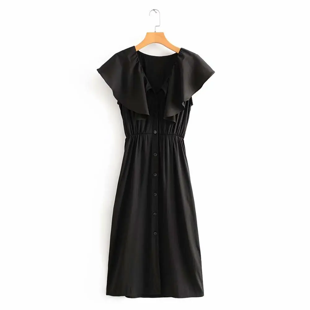 Женское модное однобортное платье средней длины с v-образным вырезом и оборками на пуговицах, модель 2020