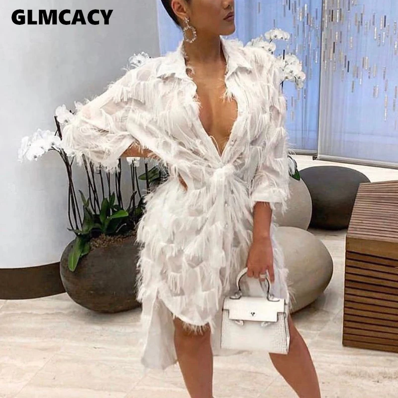 Женское перьевое дизайнерское платье-рубашка с отложным воротником Асимметричная сплошная шикарная Весенняя Осенняя свободная одежда раз...
