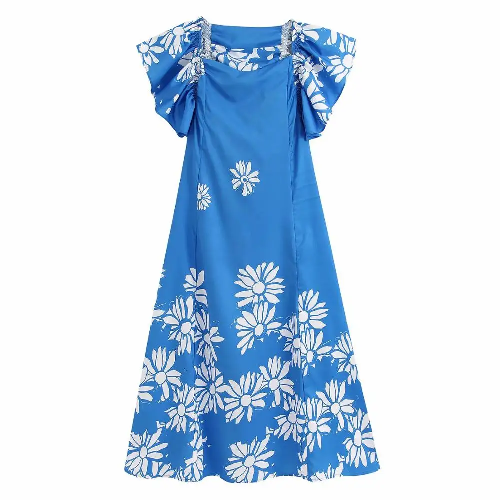 Новинка, женское платье миди с рукавом-бабочкой и принтом, стильное эластичное платье с оборками в стиле ретро, Vestidos, шикарные вечерние платья DS3391