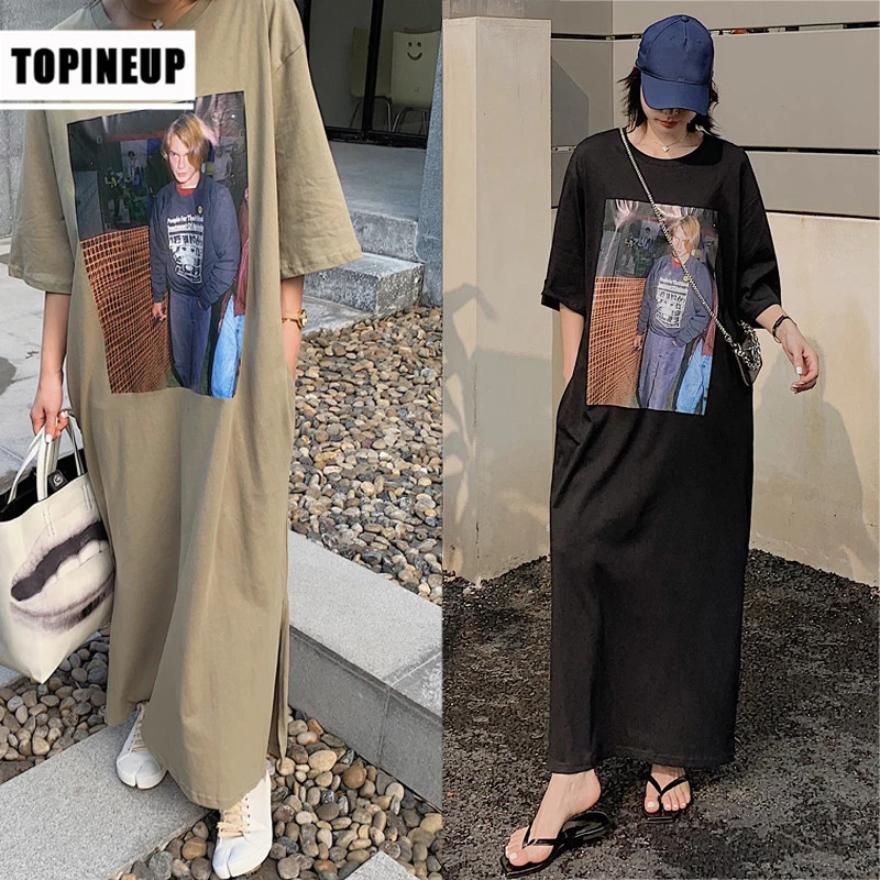 Корейский дизайн винтажное летнее элегантное платье с принтом Новое повседневное Свободное длинное уличное платье