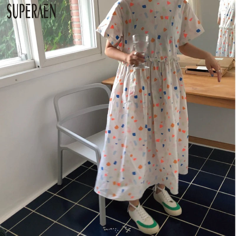 SuperAen, модное женское платье, короткий рукав, хлопок, повседневное, женское платье, лето, новинка 2020, Круглый ворот, женская одежда