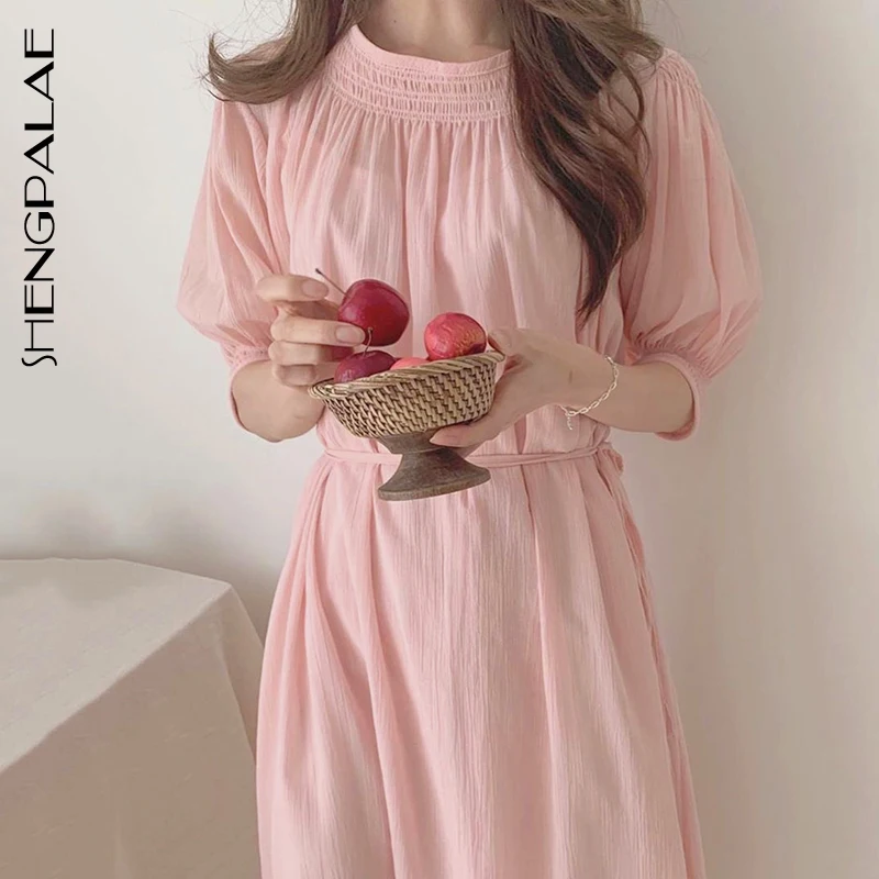 Женское винтажное платье SHENGPALAE, длинное облегающее платье с высокой талией, рукавами-фонариками и о-вырезом, лето 2020