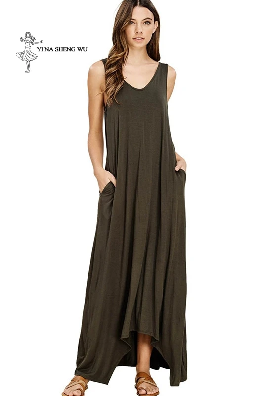 2019 летняя Женская Новая мода Базовая майка длинное платье сексуальный жилет без рукавов танки тонкий ремень вечерние платья карман длинное...