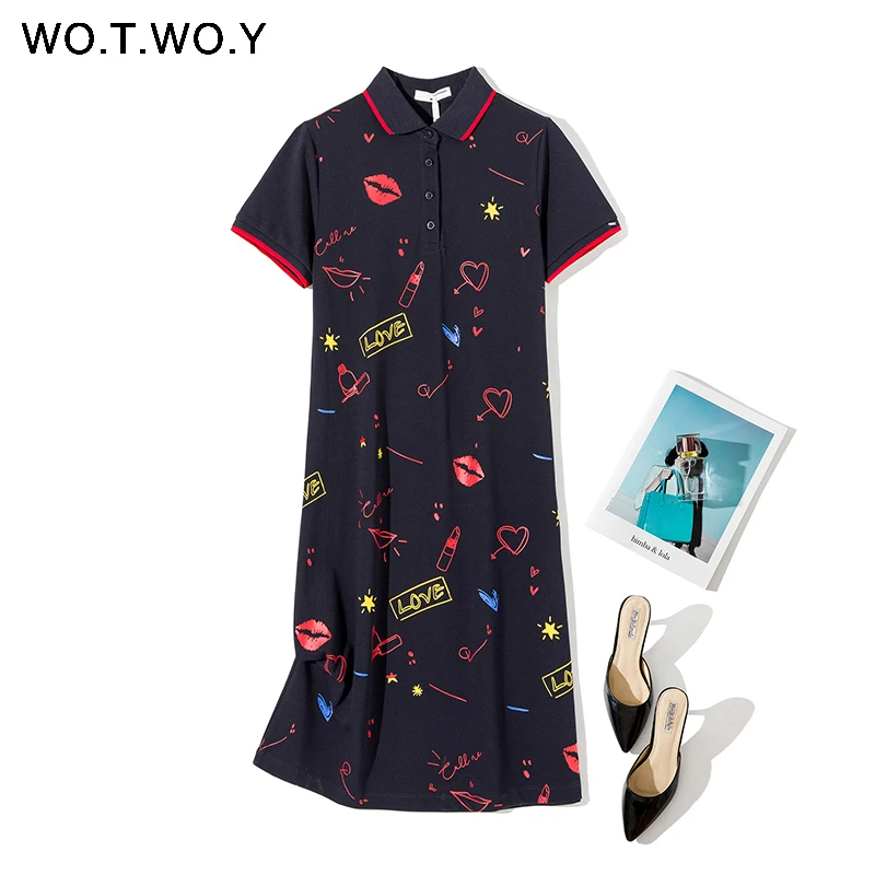 WOTWOY повседневное милое платье Поло женское хлопковое с принтом свободные стильные летние платья Femme короткий рукав размера плюс vestidos mujer Verano