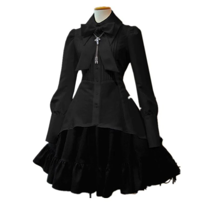 Летние Элегантные женские платья в стиле Лолиты, черные, вечерние, большие размеры, воротник с бантом, плиссированное, на шнурках, винтажное, белое, шикарное платье